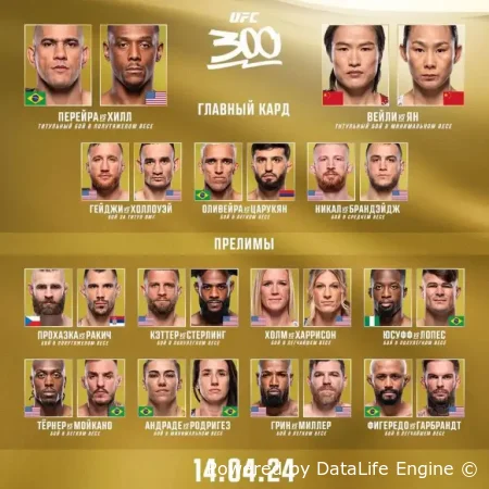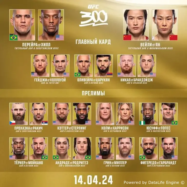 UFC 300 смотреть онлайн все бои в прямом эфире 14.04.2024